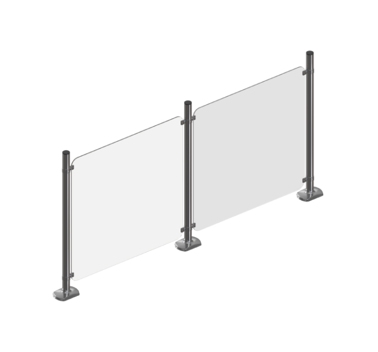Paneles estéticos y funcionales que organizan la circulación y mejoran la imagen del punto de venta. Disponibles en acabado transparente o satinado.
