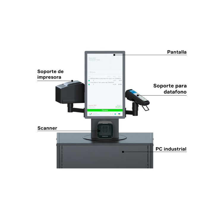 Punto de cobro autoservicio compacto, ideal para espacios reducidos y operaciones de pago rápido. ROTO es una solución minimalista, eficiente y visualmente integrada que permite agilizar el flujo sin ocupar grandes superficie